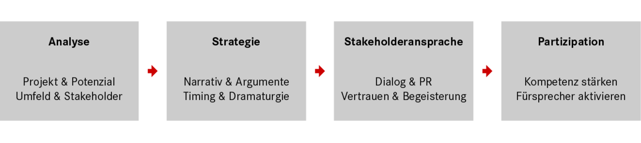 Dazu muss man wissen: Bei solchen Prozessen trifft man im Grunde immer wieder auf die gleichen vier Personengruppen: die öffentlich Unterstützenden, die stillen Befürworter, die innerlich Ablehnenden und die aktiven Widerständler. Uns geht es darum, Erfolgsgeschichten zu erzählen und Fürsprecher im Unternehmen zu identifizieren, diejenigen, die offen dafür sind, zu Multiplikatoren zu machen. Die stillen Befürworter sehen wir als Potenzial, die innerlich Ablehnenden als Dialogpartner, deren Vorbehalte wir verstehen und die wir überzeugen wollen. So machen wir Zukunft kommunizierbar – und schaffen Akzeptanz für Innovation und Technologie.