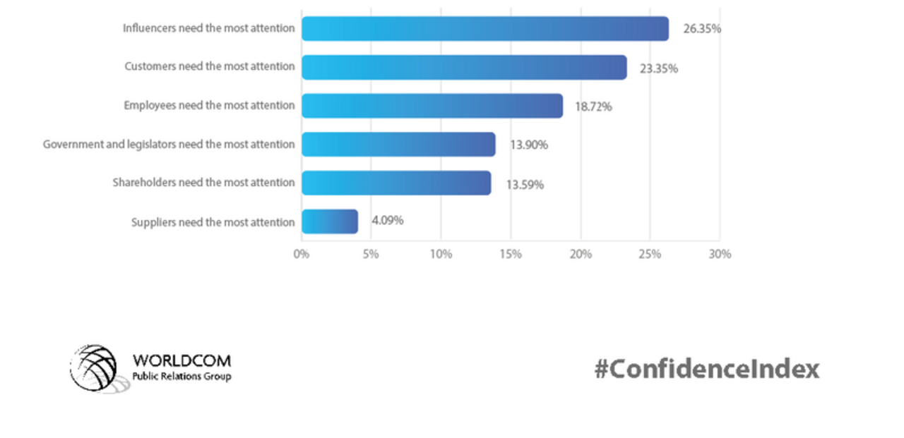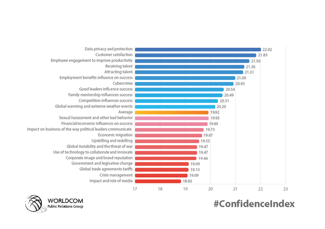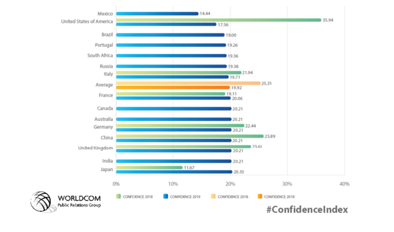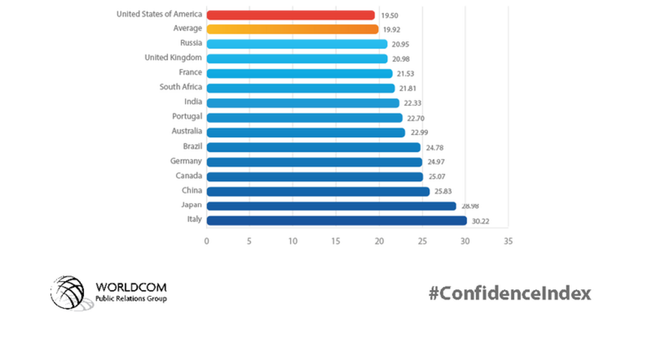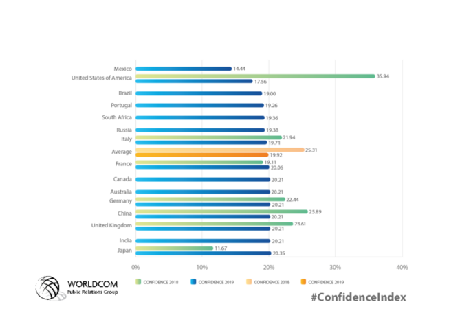 Die Worldcom Public Relations Group, eines der weltweit größten Netzwerke inhabergeführter Kommunikationsagenturen, erfasst für den Worldcom Confidence Index mithilfe eines Studiendesigns auf Basis Künstlicher Intelligenz (KI) die öffentlich zugänglichen Aussagen von rund 58.000 Entscheidern aus sieben Regionen und 15 Ländern. Das Modell ist traditionellen Online- oder Telefonbefragungsmethoden deutlich überlegen, denn das KI-Modell analysiert detailliert die direkten Aussagen von CEOs und CMOs weltweit und wertet sie semantisch aus.